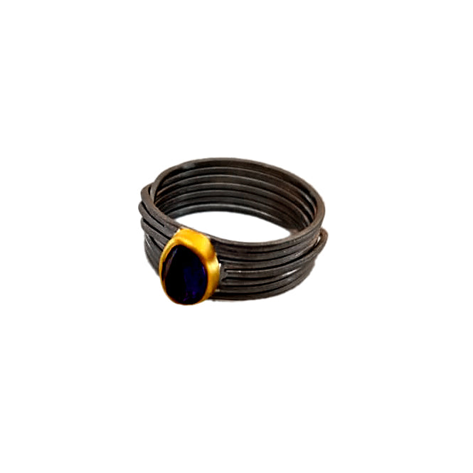 2 Tone Oxidized Silver Ring with 925 Sterling Silver & Gemstone