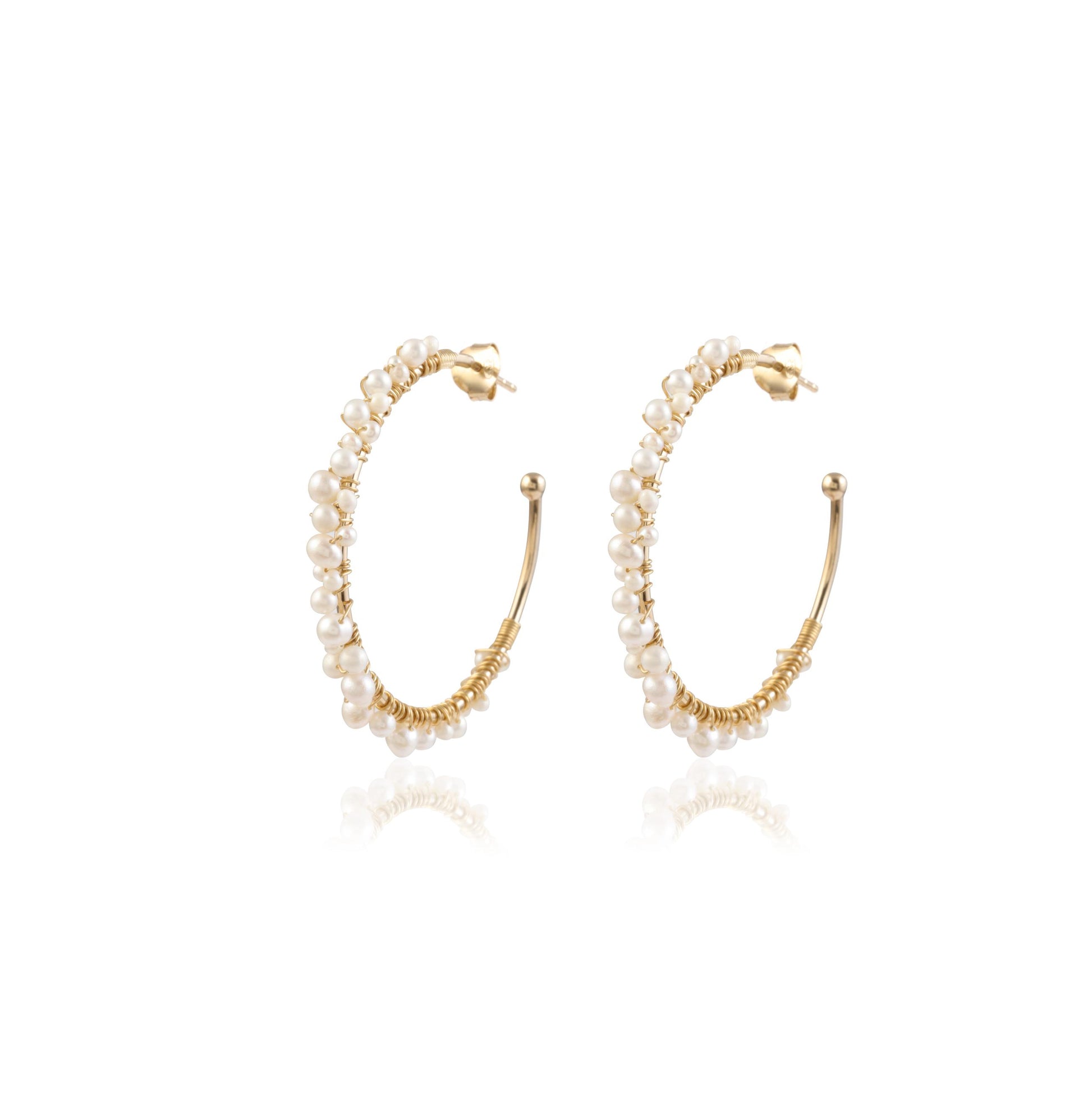 White Pearl Gemstone Gold Platted Silver Earring made with 925 Sterling Silver.