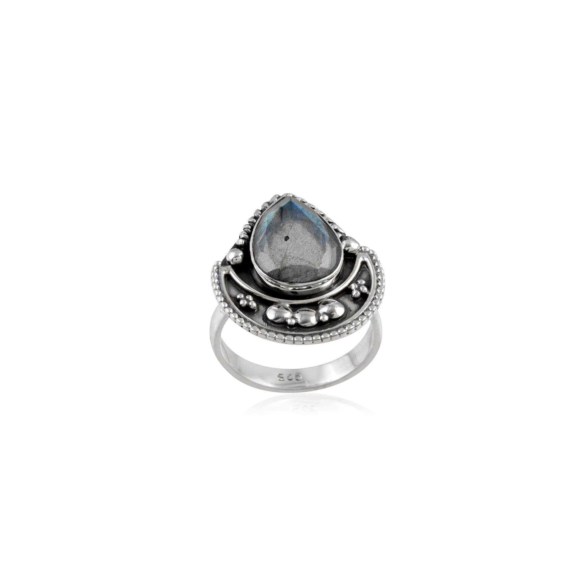 925 Sterling silver hammer stone ring made with silver.
